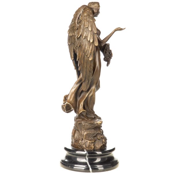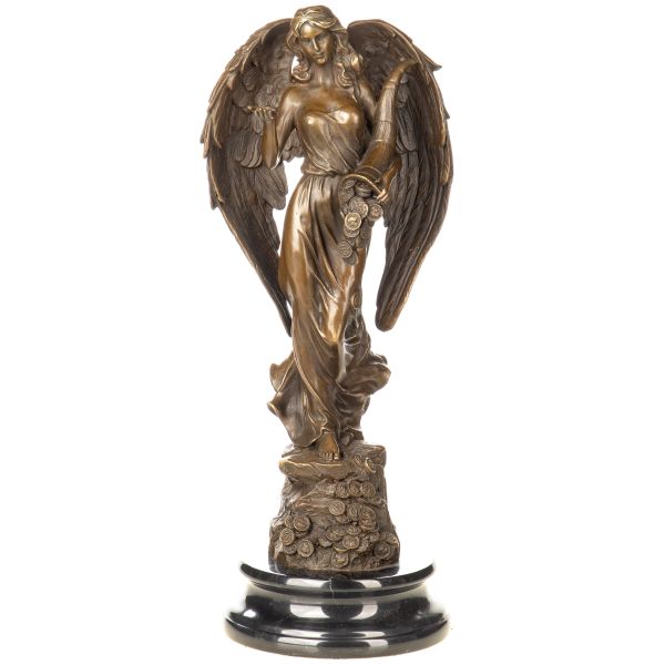 Ručně odlitá bronzová socha anděla Fortuny na mramorovém podstavci