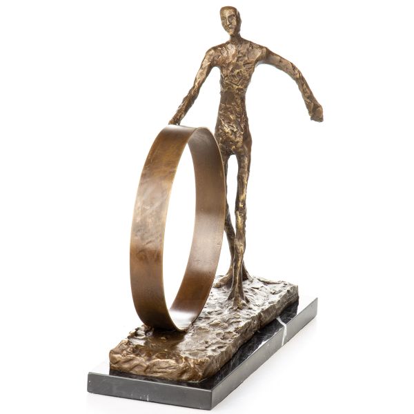 Moderní ručně odlitá bronzová socha na mramorovém podstavci