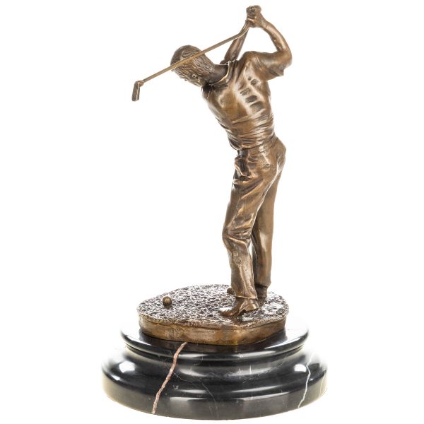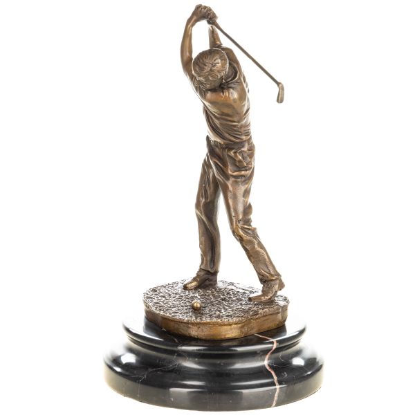 Ručně odlitá bronzová socha na mramorovém podstavci - hráč golfu