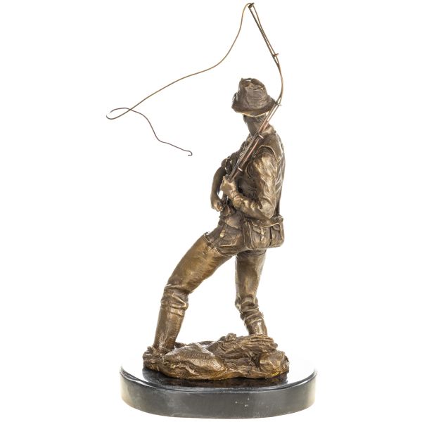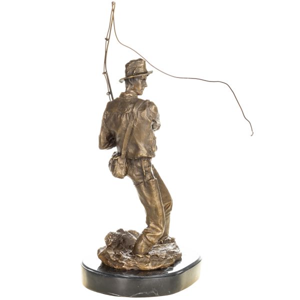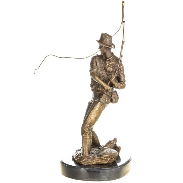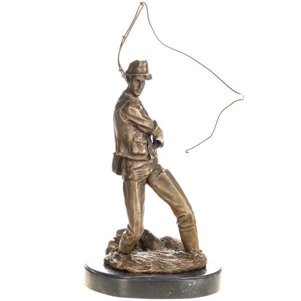 Ručně odlitá bronzová socha rybáře na mramorovém podstavci