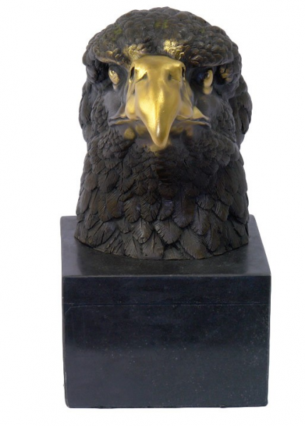 Velmi pečlivě vytvořená bronzová socha na mramorovém podstavci. Předlohou této sochy je socha z dílny umělce -Milo. Ostrý zobák je zhora pozlacen a simuluje autentický orlí zobák. Socha je opatřena podpisem umělce.