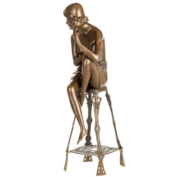 bronzová socha Art Deco Žena na stoličke 99
