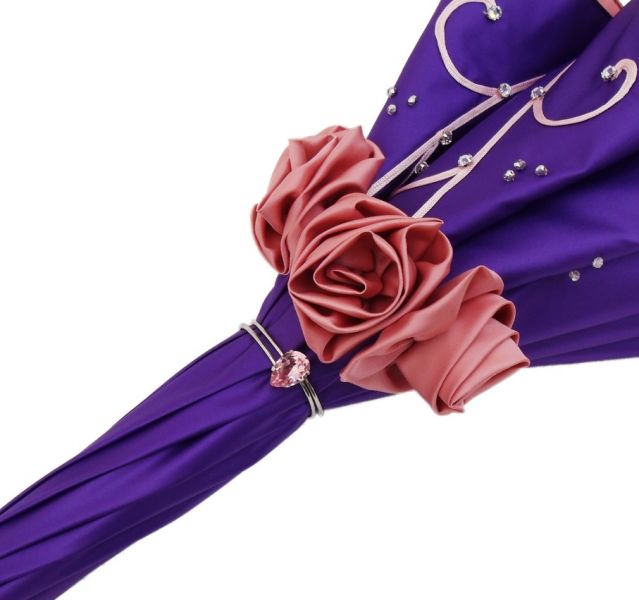 • střecha deštníku zdobena růžičkami a Swarovsky krystaly