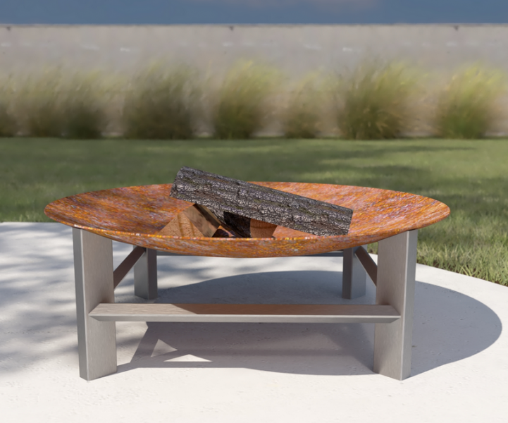 Robustní přenosné venkovní ohniště ze surové masivní švédské oceli. Podstavec je vyroben z nerez oceli