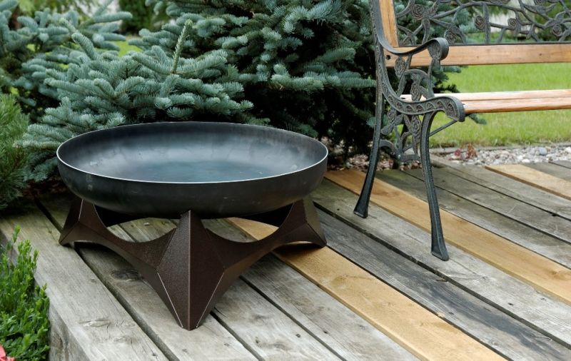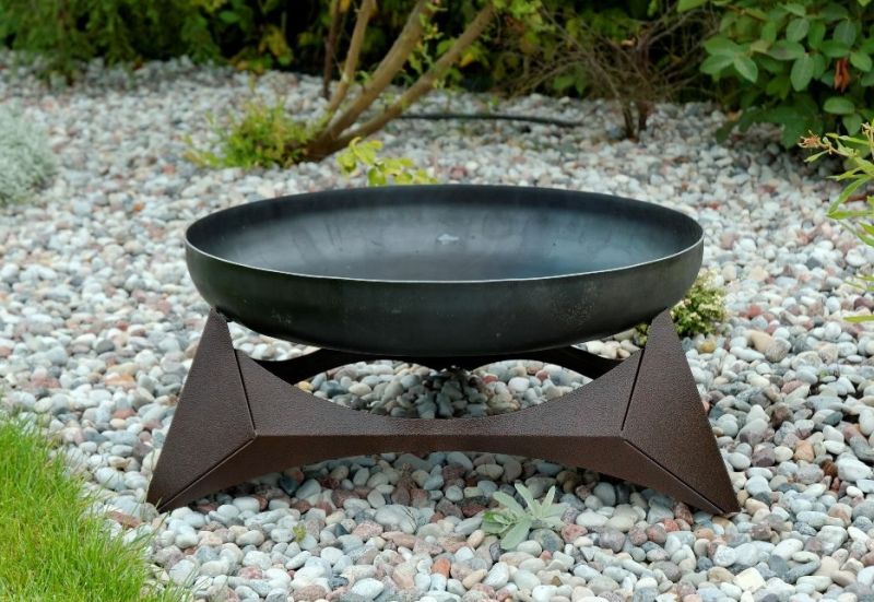 Robustní přenosné venkovní ohniště ze surové masivní oceli o tloušťce 3,5mm (není antikorozní) s atraktivním podstavcem ze surové oceli a barveným práškovou barvou v měděném odstínu.