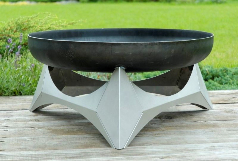 Robustní přenosné venkovní ohniště ze surové masivní oceli o tloušťce 3,5mm (není antikorozní) s atraktivním podstavcem z nerez oceli.