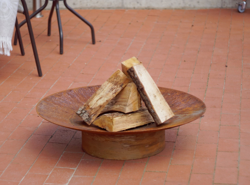 Moderní přenosné venkovní ohniště ze surové masivní oceli o tloušťce 2,5/ 3,2mm (není antikorozní) se solidním podstavcem. Kompletní ohniště není antikorozní.
