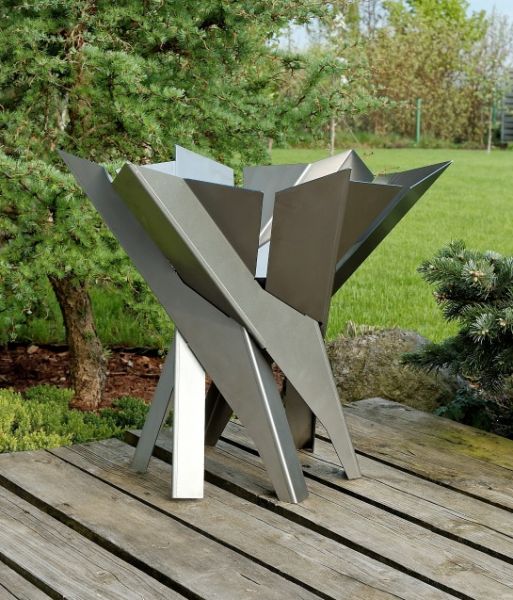 Robustní přenosné venkovní ohniště ze surové masivní oceli o tloušťce 2mm - není antikorozní. Ohniště je ozdobou terasy či zahrady až už jako ohniště nebo je možno jej osadit i květinami. Skládá se z několika dílů, je tedy demontovatelné, dodáváno je však smontované. Samostatný popelník ulehčí čistění.