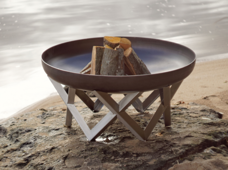 Robustní přenosné venkovní ohniště ze surové masivní oceli o tloušťce 2,5/ 3,2mm (není antikorozní) s atraktivním, nezničitelným podstavcem z nerez oceli oceli.