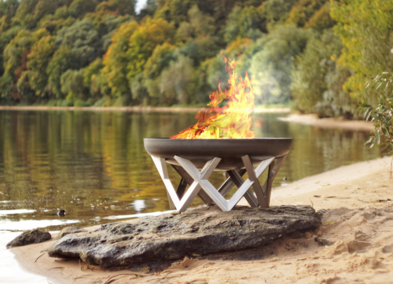 Robustní přenosné venkovní ohniště ze surové masivní oceli o tloušťce 2,5/ 3,2mm (není antikorozní) s atraktivním, nezničitelným podstavcem z nerez oceli oceli.