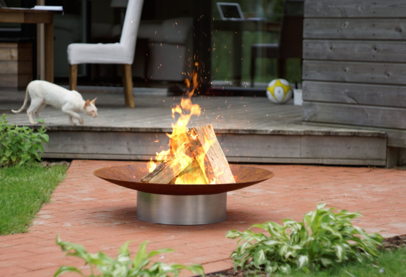 Moderní přenosné venkovní ohniště ze surové masivní oceli o tloušťce 2,5/ 3,2mm (není antikorozní) se solidním podstavcem z nerez oceli. Mísa ohniště není antikorozní.