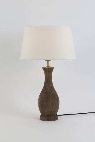 Elegantní stolní lampa se stínidlem hedvábné struktury v kombinaci s mangovým dřevem