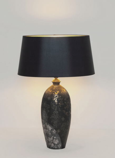 materiál: keramika černo-šedo-stříbrná, stínidlo chintz se zlatým vnitřkem