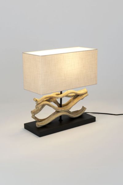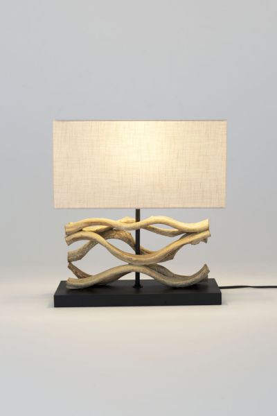 Materiál: přírodní orchideové dřevo, textilní stínidlo s lněnou strukturou
