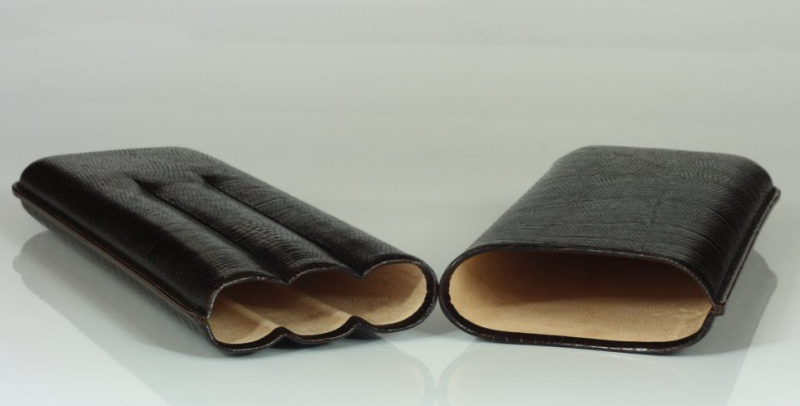 Ručně vyrobené pouzdro na doutníky z hovězí kůže s ražením. Vnitřek pouzdra je z tenké kozí kůže, jejíž vůně se příjemně snoubí s vůní doutníků. Švy pouzdra jsou tenké a elegantní.