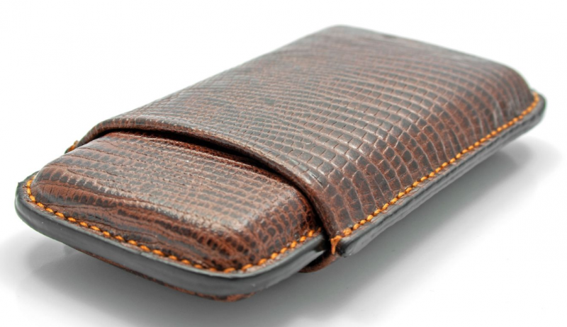 Ručně vyrobené pouzdro na doutníky z hovězí kůže s ražením. Vnitřek pouzdra je z tenké kozí kůže, jejíž vůně se příjemně snoubí s vůní doutníků. Švy pouzdra jsou tenké a elegantní.