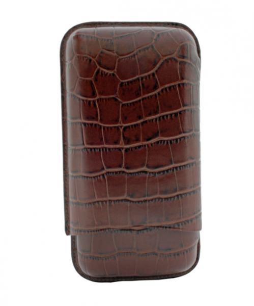 Ručně vyrobené pouzdro na doutníky z hovězí kůže s kroko ražením. Vnitřek pouzdra je z tenké kozí kůže, jejíž vůně se příjemně snoubí s vůní doutníků. Švy pouzdra jsou tenké a elegantní.