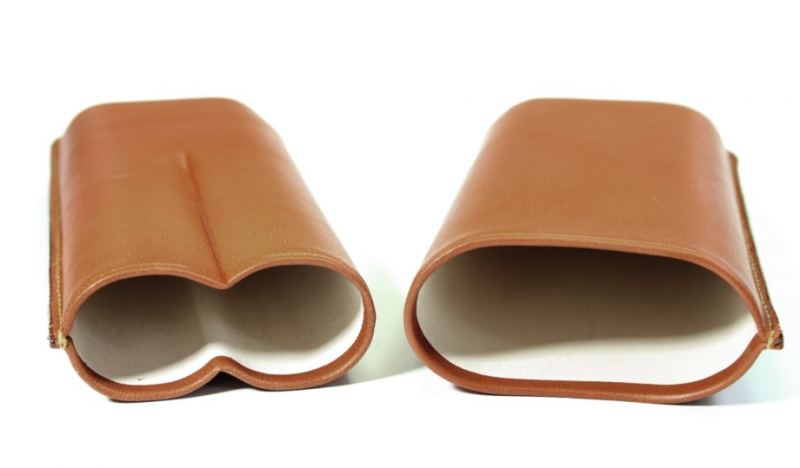 Ručně vyrobené pouzdro na doutníky z hovězí kůže s ražením. Vnitřek pouzdra je z tenké kozí kůže, jejíž vůně se příjemně snoubí s vůní doutníků. Švy pouzdra jsou tenké a elegantní.