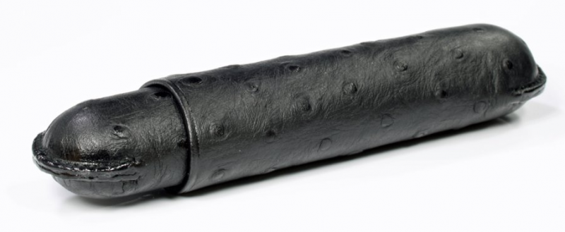 Ručně vyrobené pouzdro na doutníky z hovězí kůže se vzorem pštrosí kůže.. Vnitřek pouzdra je z kozí kůže, jejíž vůně se příjemně snoubí s vůní doutníků. Švy pouzdra jsou tenké a elegantní.