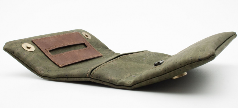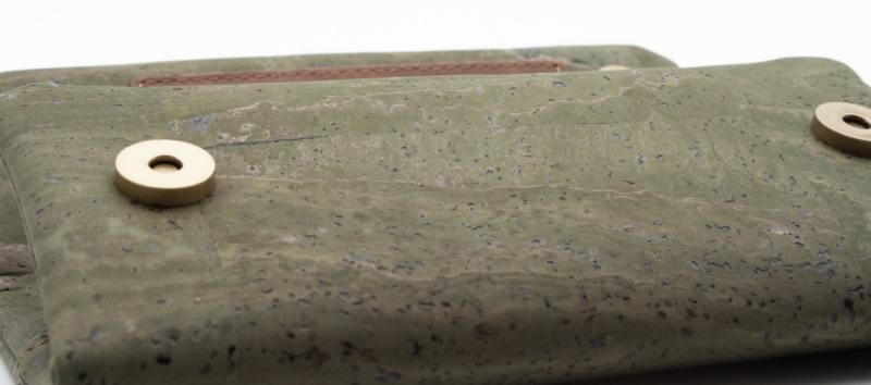 Nancy Fotopolou zkrátka nikdy nedochází nápady. Neustále nás překvapuje novými designy a vždy nám poskytuje tolik potřebný „závan čerstvého vzduchu“. Pro tuto jemně řezanou tašku byl korkový dub slepen v několika vrstvách, poté rozdělen na tenké kousky a nažehleny na pogumovaný podklad. Vzhled je skutečně mimořádný. Obsahuje přihrádku na příslušenství.
