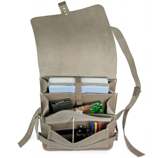 Malý stylový batoh z hladké, barvené hovězí kůže. Puristicky vypadající městský batoh má tři oddělení odstupňované do výšky. Nikdy tedy nebudete muset dlouho hledat uložené věci - tablet, deštník, mobil, kapesníky atd. Možno uložit i tenčí desky A4.