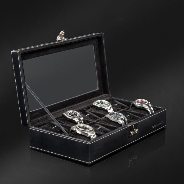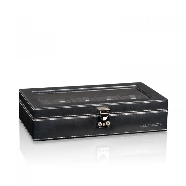 Ať už na cestách nebo doma, boxy na hodinky řady Solid jsou ideálním místem pro stylové a bezpečné uložení vašich hodinek. Vysoce kvalitní umělá kůže s bílým ozdobným prošíváním vypadá sofistikovaně a elegantně, aniž by byla okázalá.