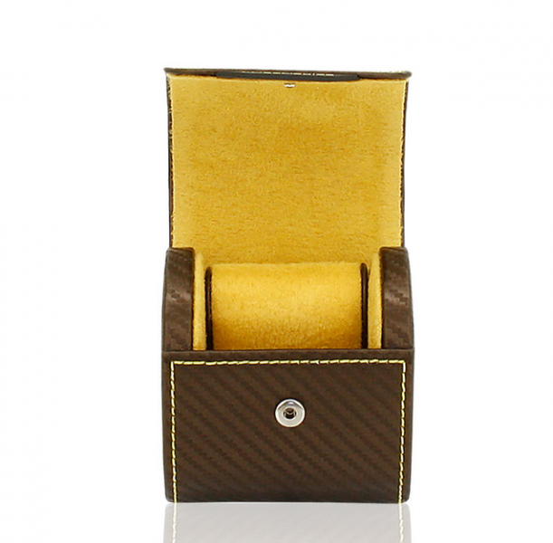 Pouzdro na jedny hodinky z jemné syntetiky v karbonu, kontrastní prošití.