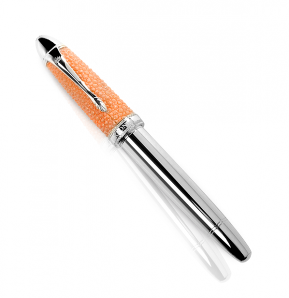 úvodní Luxusné perá Krone kolekcie rollerov z drahých kovov Krone strieborný roller s raje kožou a bielymi diamantmi