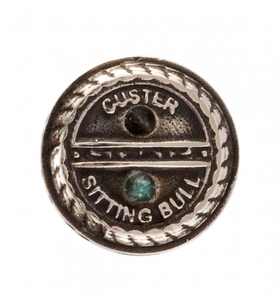 Víčko a zakončení barelu je vyrobeno z pravé rohoviny. Víčko je zakončeno mincovním stříbrem a sdružuje dva vyjímečné artefakty - prášek z rohu Custera a zlomek korálku z indiánské čelenky Sedícího býka. Na stříbrném pásku na víčku je podpis Custera.