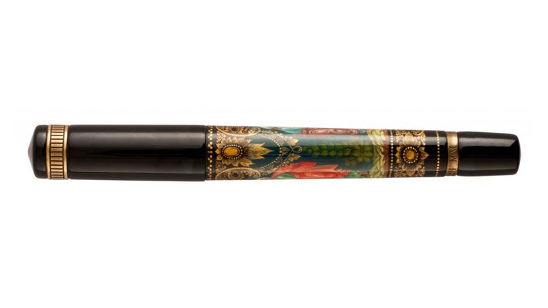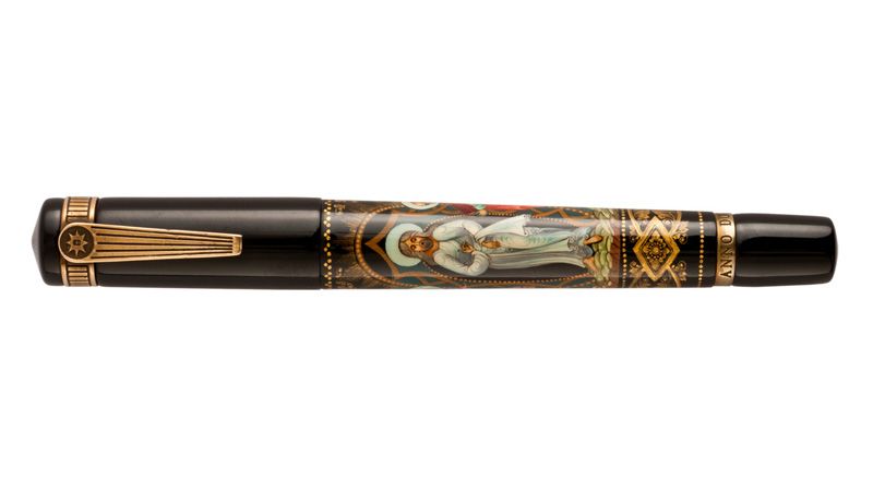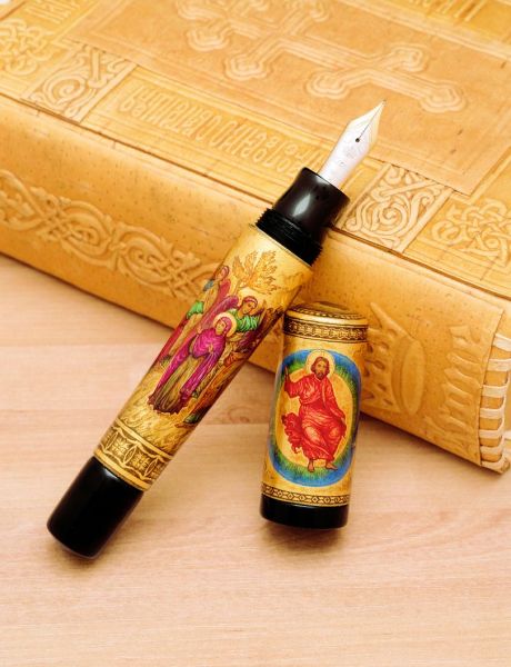 Anno Domini znamená latinsky "léta Páně" a označuje letopočet od narození Krista. Vyskytuje se v křesťanských dokumentech, na nápisech atd. Anno Domini zobrazuje nádherné řemeslné zpracování ruského umělce ikonografického původu. Nejlepší palekh řemeslníci vytvářeli pravoslavné ikony pro kostely. Velký ikonograf Ivan I Golikov se stal zakladatelem nového umění - palekh lakovaných miniatur. V tomto oboru miniaturizace není možné mechanické zpracování. Naopak, každý kus je produktem individuelní kreativity. Vyobrazení na peru hovoří o zázračné události, kdy se Kristus přeměnil před zraky svých učedníků • hvězdice v horní části klipu znamená narození Krista a Betlémskou hvězdu • dvoubarevný hrot z iridiovaného 18-ti karátového zlata ve velikostech F, M, B • ebonitové tělo pera s pístovým plněním • klip a kroužek z 18-ti karátového zlata • plnicí pero je dodáno v ručně vyrobeném bohu z březové kůry Limitovaná edice 100ks plnicích per |
