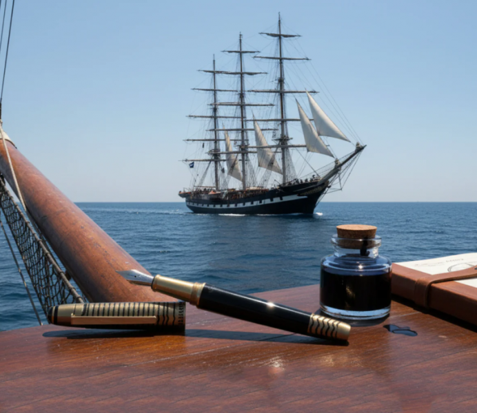 Oslavujeme eleganci a historii cvičné lodi Amerigo Vespucci touto exkluzivní číslovanou kolekcí per, která zachycuje podstatu italské námořní tradice. Tělo pera je vyrobeno z drahocenné černé pryskyřice, hluboké a lesklé jako vody rozbouřeného moře. Pozlacená kovová horní část dodává peru nádech lesku a připomíná sluneční světlo odrážející se od plachet lodi. Tento kontrast mezi hloubkou černé a nádherou zlata vytváří pozoruhodný vizuální efekt. Víčko, celé ze pozlaceného kovu, je zdobeno detailní rytinou profilu lodi Amerigo Vespucci. Stylizované vlny obklopující víčko evokují pohyb moře, zatímco název kolekce, jemně vyrytý, dotváří design nádechem elegance. Celek vytváří podmanivý předmět, který oslavuje krásu a sílu lodi.Vlastnictví jednoho z těchto per znamená nést s sebou kus historie, symbol elegance a národní hrdosti. Perfektní dárek pro milovníky moře, historie a luxusu.