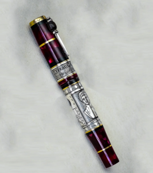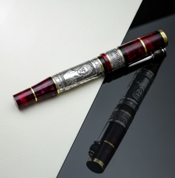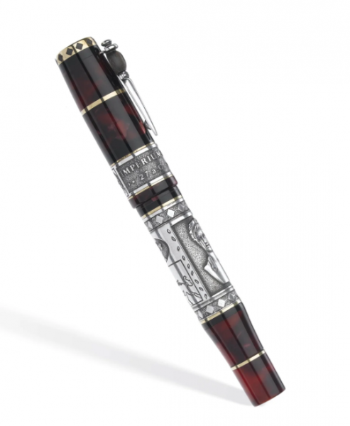 Pero vytvořené k oslavě říše, kultury, která je základem moderní západní civilizace: Římská říše, upevněná v evropsko-středomořské oblasti mezi 1. a 4. stoletím př. n. l., je považována za největší z hlediska územního řízení a kvality, sociopolitické organizace a významu stopy, kterou zanechala v lidských dějinách. Na územích, přes která rozšířili své hranice, Římané budovali města, silnice, mosty a akvadukty, všude exportovali svůj model civilizace a zároveň asimilovali dobyté obyvatelstvo a civilizace. I po zániku říše se tito lidé nadále nazývali Římany. Skvrnitá červená barva charakterizuje kolekci Imperium Romanum, vyrobenou z italské pryskyřice vyfrézované z masivního tyčového materiálu. Středový pás stříbrného těla reprodukuje podobiznu Augusta. Stříbrná spona má malý, ručně vyrobený dřevěný prvek. Kroužek na stříbrném víčku obsahuje dvě data, která obecně označují začátek a konec jednoho státního celku: 27 př. n. l. - 395 n. l.