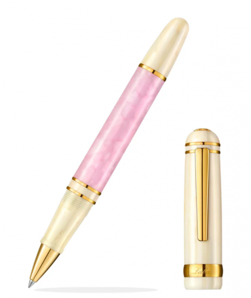 Kuličkové pero Laban Sakura má tak jemnou, sladkou růžovou barvu, jako bychom se sbírali, do dlaní padají okvětní lístky třešní. Tělo a víčko jsou vyrobeny z akrylové pryskyřice a zdobeny pozlacenými detaily.
