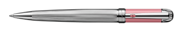 Luxusní kuličkové pero vyrobené z mosazi. V klipu a korunce víčka je usazen Swarovsky krystal růžové barvy. Tělo pera je jemně vroubkované.