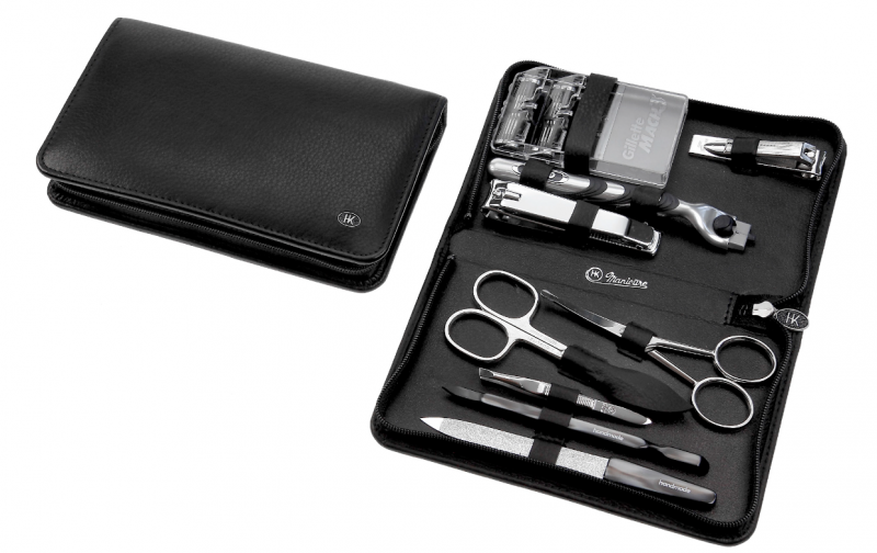 úvodní Manikúrové sety, kozmetické tašky a kufríky manikúrové sety Hans Kniebes cestovná 9-dielna sada pre mužov v koženom puzdre 8