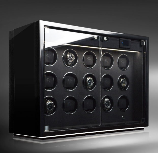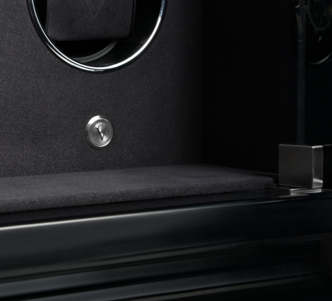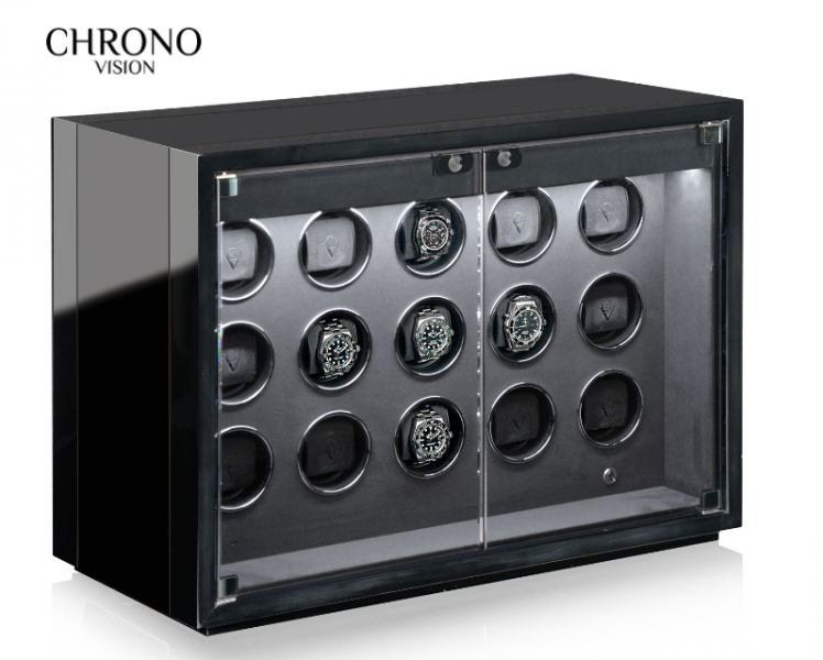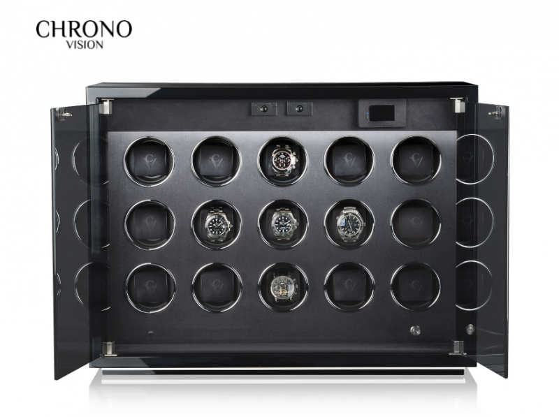 Stolní modely z řady Ambiance nabízejí sběratelům hodinek perfektní pódium pro kvalitní prezentaci jejich pokladů. Dvě stmívatelná LED světla efektně zvýrazňují modely Ambiance: Zatímco vnitřní osvětlení odhaluje hodiny skryté za kouřovým sklem, ambientní osvětlení integrované do podstavce decentně podtrhuje elegantní vzhled objektu. • materiál dřevo/MDF • interiér velour Technické parametry • stop pozice 12 hodin, ambientní světlo, stmívatelné LED vnitřní osvětlení, modulární rozšiřitelný systém, fáze spánku, rychlé natahování, samostatně programovatelné motory pro každé hodiny, synchronní chod • samostatně zapínatelné osvětlení, průhledové okénko • možnost uzamčení • ovládání pomocí app/bluetooth • počet volitelných otáček: 500…-2 500 (v krocích po 50), 500…-2 650 (v krocích po 50), 550…-2 650 (v krocích po 50) • síťové napájení • šířka objímky: 5,5cm • obvod objímky: 15cm Rozměr: 46x62x30cm Hmotnost: cca 35kg