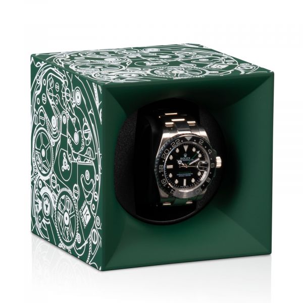 Objevte švýcarský natahovač hodinek Kubik ze série Starterbox – ideální řešení pro pečlivé uložení a údržbu vašich automatických hodinek. Tento natahovač hodinek, vyrobený z vysoce kvalitního plastu, byl navržen pro náročné potřeby hodinářských nadšenců a kombinuje funkčnost s elegantním designem pro optimální prezentaci a péči o vaše cenné hodinky. Kompaktní a všestranný design: S délkou hrany pouhých 11,2 cm se švýcarský natahovač hodinek Kubik perfektně hodí i do těch nejmenších prostor – ať už je to trezor nebo skříňka. Flexibilní a bezdrátové napájení: Bezdrátová funkce natahovače hodinek nabízí maximální flexibilitu v umístění. Zařízení je napájeno dvěma vysoce výkonnými bateriemi LR14, které mají působivou životnost až tři roky. Snadná manipulace bez složitého programování: Ve srovnání s modely řady Masterbox nabízí Starterbox jednoduché ovládání bez nutnosti složitého programování přes Bluetooth. Pohodlně umístěné tlačítko na zadní straně umožňuje snadné zapínání/vypínání zařízení. Natahovač hodinek provede denně 1800 otáček, rovnoměrně rozložených mezi otáčení ve směru a proti směru hodinových ručiček, aby byla zajištěna optimální údržba vašich hodinek. Nastavitelná spona na hodinky pro perfektní uchycení - natahovač hodinek je dodáván se standardní sponou na hodinky, která bezpečně drží náramkové hodinky s obvodem 165 mm až 195 mm. Pro nositele hodinek s menším zápěstím jsou k dispozici volitelně menší spony na hodinky s obvodem 152 mm až 174 mm, což zajišťuje, že si každý hodinářský nadšenec může užívat plného pohodlí a bezpečnosti natahovače hodinek.