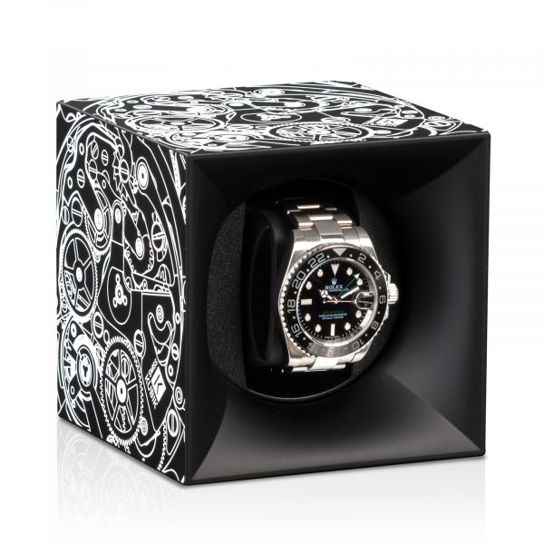 Objevte švýcarský natahovač hodinek Kubik ze série Starterbox – ideální řešení pro pečlivé uložení a údržbu vašich automatických hodinek. Tento natahovač hodinek, vyrobený z vysoce kvalitního plastu, byl navržen pro náročné potřeby hodinářských nadšenců a kombinuje funkčnost s elegantním designem pro optimální prezentaci a péči o vaše cenné hodinky. Kompaktní a všestranný design: S délkou hrany pouhých 11,2 cm se švýcarský natahovač hodinek Kubik perfektně hodí i do těch nejmenších prostor – ať už je to trezor nebo skříňka. Flexibilní a bezdrátové napájení: Bezdrátová funkce natahovače hodinek nabízí maximální flexibilitu v umístění. Zařízení je napájeno dvěma vysoce výkonnými bateriemi LR14, které mají působivou životnost až tři roky. Snadná manipulace bez složitého programování: Ve srovnání s modely řady Masterbox nabízí Starterbox jednoduché ovládání bez nutnosti složitého programování přes Bluetooth. Pohodlně umístěné tlačítko na zadní straně umožňuje snadné zapínání/vypínání zařízení. Natahovač hodinek provede denně 1800 otáček, rovnoměrně rozložených mezi otáčení ve směru a proti směru hodinových ručiček, aby byla zajištěna optimální údržba vašich hodinek. Nastavitelná spona na hodinky pro perfektní uchycení - natahovač hodinek je dodáván se standardní sponou na hodinky, která bezpečně drží náramkové hodinky s obvodem 165 mm až 195 mm. Pro nositele hodinek s menším zápěstím jsou k dispozici volitelně menší spony na hodinky s obvodem 152 mm až 174 mm, což zajišťuje, že si každý hodinářský nadšenec může užívat plného pohodlí a bezpečnosti natahovače hodinek.