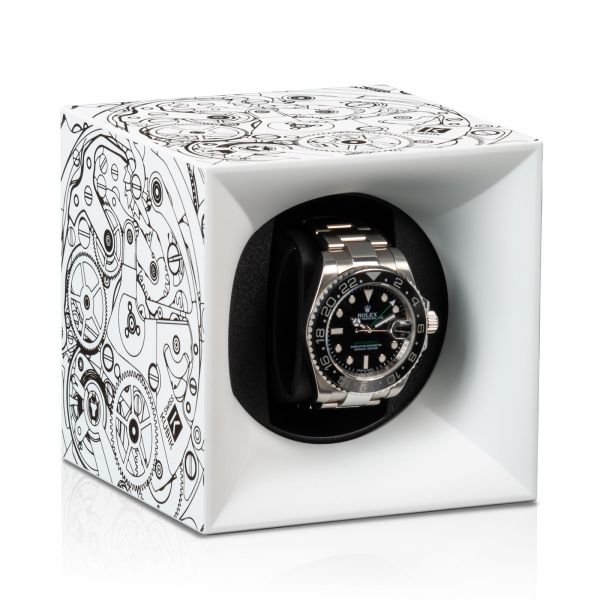 Objevte švýcarský natahovač hodinek Kubik ze série Starterbox – ideální řešení pro pečlivé uložení a údržbu vašich automatických hodinek. Tento natahovač hodinek, vyrobený z vysoce kvalitního plastu, byl navržen pro náročné potřeby hodinářských nadšenců a kombinuje funkčnost s elegantním designem pro optimální prezentaci a péči o vaše cenné hodinky. Kompaktní a všestranný design: S délkou hrany pouhých 11,2 cm se švýcarský natahovač hodinek Kubik perfektně hodí i do těch nejmenších prostor – ať už je to trezor nebo skříňka. Flexibilní a bezdrátové napájení: Bezdrátová funkce natahovače hodinek nabízí maximální flexibilitu v umístění. Zařízení je napájeno dvěma vysoce výkonnými bateriemi LR14, které mají působivou životnost až tři roky. Snadná manipulace bez složitého programování: Ve srovnání s modely řady Masterbox nabízí Starterbox jednoduché ovládání bez nutnosti složitého programování přes Bluetooth. Pohodlně umístěné tlačítko na zadní straně umožňuje snadné zapínání/vypínání zařízení. Natahovač hodinek provede denně 1800 otáček, rovnoměrně rozložených mezi otáčení ve směru a proti směru hodinových ručiček, aby byla zajištěna optimální údržba vašich hodinek. Nastavitelná spona na hodinky pro perfektní uchycení - natahovač hodinek je dodáván se standardní sponou na hodinky, která bezpečně drží náramkové hodinky s obvodem 165 mm až 195 mm. Pro nositele hodinek s menším zápěstím jsou k dispozici volitelně menší spony na hodinky s obvodem 152 mm až 174 mm, což zajišťuje, že si každý hodinářský nadšenec může užívat plného pohodlí a bezpečnosti natahovače hodinek.