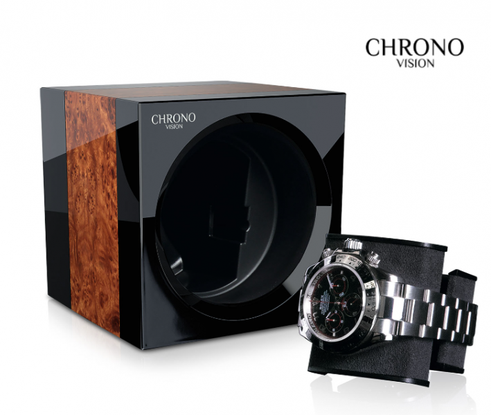Objevte dokonalost natahovače hodinek Chronovision ONE – dokonalého doplňku pro milovníky hodinek po celém světě. Vyrobeno v Německu, ONE kombinuje vynikající design a nepřekonatelnou kvalitu v jediném kompaktním zařízení. Každý jednotlivý ONE prochází důkladným počítačem řízeným funkčním testem, než vám bude doručen. Napájení je zajištěno flexibilně pomocí 2 baterií LR14 nebo volitelně dodávaného napájecího zdroje. S kompaktními rozměry pouhých 10 cm délky hrany a možností napájení pomocí baterie lze ONE stylově umístit i do těch nejmenších rohů – bez připojení k napájení. Také obzvláště zajímavé - díky modulární konstrukci a přiloženému propojovacímu kabelu lze ovládat až šest ONE natahovačů hodinek pouze jedním napájecím zdrojem, což vám dává ještě větší flexibilitu. Hodinky bezpečně drží na objímce potažené kvalitním velurem. Dvě nerezové kuličkové západky zalisované do boku objímky zajišťují pevné držení během provozu. Všechna nastavení lze pohodlně provést prostřednictvím smartphonu nebo tabletu pomocí aplikace Chronovision Connect (pro iOS a Android), co stojí za vyzdvihnutí, je integrovaná databáze hodinek v aplikaci, která vám umožní vybrat značku a model vašich automatických hodinek. ONE automaticky detekuje správný směr otáčení a počet otáček. A pokud vaše hodinky ještě nejsou v databázi, můžete si snadno provést vlastní nastavení. Se třemi režimy otáčení (pravý, levý, střídavý), nastavitelným počtem otáček 550-2650 otáček za den (v krocích po 50 otáčkách), polohou zastavení 12 hodin pro perfektní prezentaci vašich hodinek a mechanismem rychlého natahování, který udrží vaše hodinky před standardním intervalem jsou ONE všestranným doplňkem. Unikátní funkcí ONE je inteligentní fáze spánku, která simuluje běžné chování automatických hodinek při nošení a pozastaví natahování. V aplikaci si můžete nastavit začátek a konec fáze spánku dle vašeho přání (maximálně 14 hodin). I při aktivované fázi spánku zůstávají nastavené otáčky zachovány (úprava počtu otáček v aktivní fázi). • materiál - hliník, umělá hmota • ovládání - app, bluetooth • počet otáček za den 500…-2.500 v krocích po 50-ti • napájení: baterie, síťové napájení • šířka objímky 5,5cm • obvod: 15, 16,5 - 19,5cm Rozměr: 10x10x10cm Provedení: černý lesk |