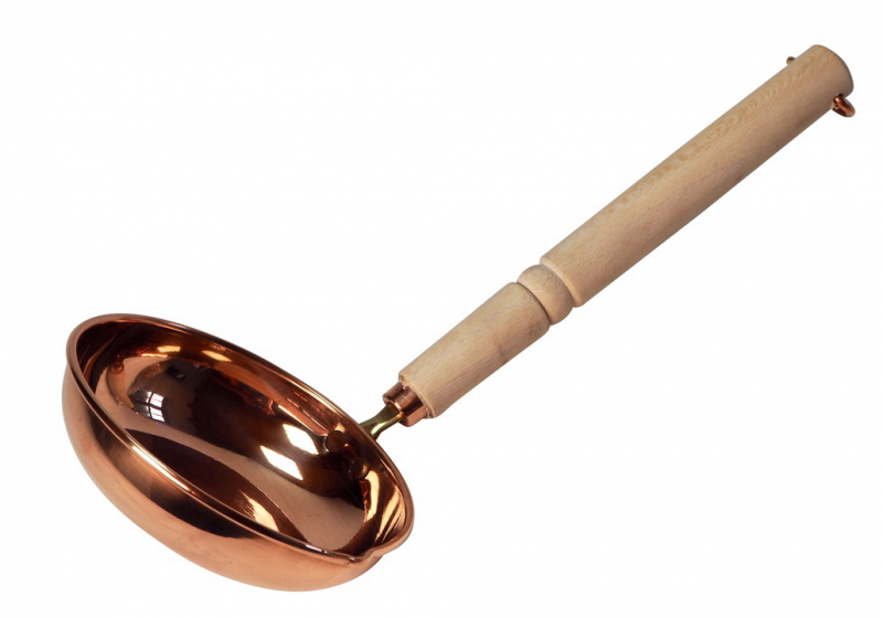 úvodní Ručne vyrábaný medený riad medené doplnky do kuchyne medená naberačka CopperGarden s drevenou rukoväťou